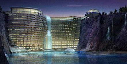 水世界酒店。提到水世界酒店,读者们一定会联想到凯文·科斯特纳(Kevin Kostner)的1995年影片《未来水世界》。可容纳400人的水世界酒店位于中国松江一个废弃的采石深坑内,由于身处郊外,美丽纯朴的自然风光成为它的一大亮点,而建在水下的公共区域和客房则让它散发出一种独特魅力。除了咖啡馆、饭馆和常见运动设施外,水世界还为宾客准备了令他们意料之外的惊喜,比如说用于攀岩、蹦极等极限运动的设施。